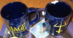 This was one of my favourite all-time gaming accessories, combining my love of coffee with my love of Mage: the Ascension. I grabbed this picture from the internet, and with the chip in the top edge on the right mug and the broken handle, it looks like others have struggled through the years too. I remember the mug I had was missing had a broken handle...this showed the use and abuse, and basically fit the theme of Mage for me. The more power you drain from reality, the more chance you get hit by paradox and things go wrong...